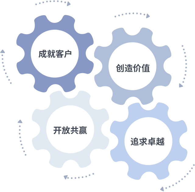 成就客户是一切决策的出发点,创造价值是衡量所有工作的标准,追求卓越是伟德国际1946做事做人的态度,开放共赢是伟德国际1946的格局也是最终的结果。价值观的齿轮环环相扣,推动着组织里的每个人不断向前。